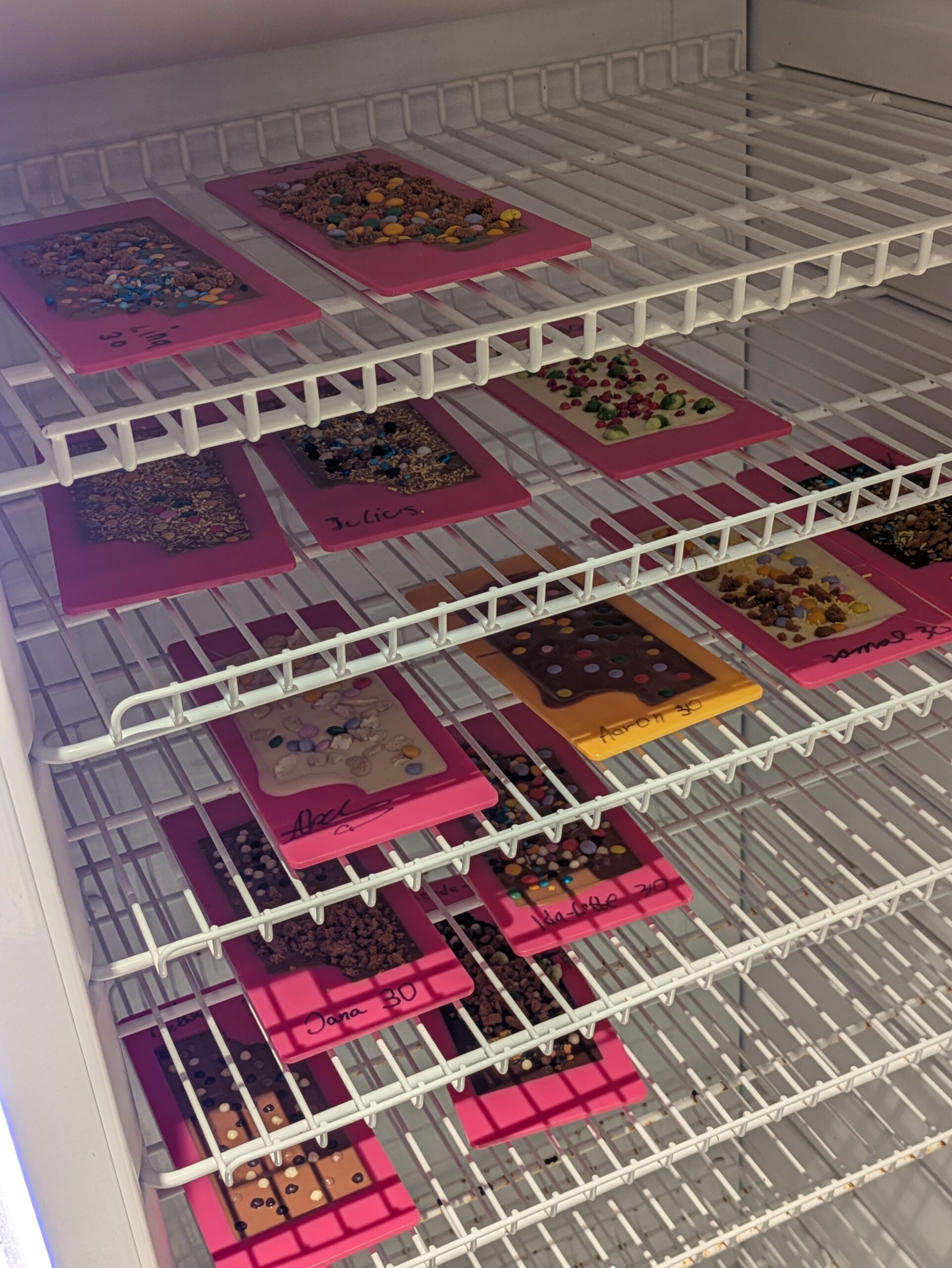 Ein besonderes Highlight der Tour war das Kreieren einer eigenen Schokoladentafel. Zur Auswahl standen Vollmilch-, Zartbitter- oder weiße Schokolade, kombiniert mit verschiedenen Toppings wie bunten Streuseln, Bananenchips, Kaffeebohnen, Cashewkernen, Smarties, rotem Pfeffer oder sogar Wasabi-Nüssen. Am Ende durfte jede*r die eigene Kreation selbst verpacken und mit nach Hause nehmen.